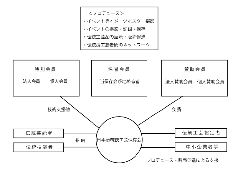 この法人は、中小企業の企業活動の拡販支援、助成及び中小企業が産出、生産する 伝統工芸、伝統工芸品、伝統文化に関わるその他の商品を社会一般に広く知らしめるほか、日本古来の伝統芸、伝統文化・文芸等の活動を広く一般に知らしめ、また恒久的に後世に残すための事業・活動を行うことを主な目的としております。